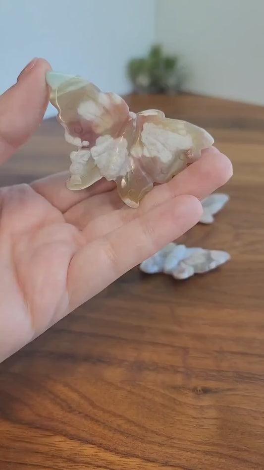 Flower Agate Butterflies | Gorgeous Crystal Butterfly | Pink, Cream, Red & Green hints of Blooms and Agate Banding | Choose Your Crystal!