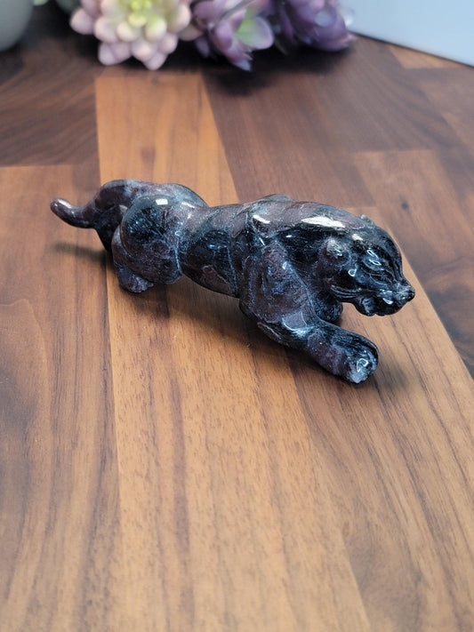 Garnet Jaguar Crystal Carving | B | 5.5 Inches | Black Red and Purple | One of a Kind