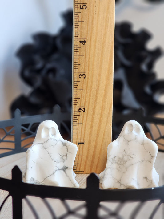 Ghost Crystal | Howlite | Halloween Decor | Spooky Season Crystals | 3D White Phantom | Mineral Carving | Witchy Vibes | Marbled Look