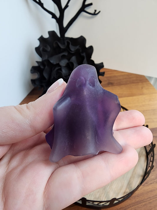 Ghost Crystal | Purple Fluorite | Halloween Decor | Spooky Season Crystals | 3D Carving | Witchy Vibes
