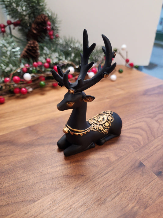 Gorgeous Deer Sphere Stand | Black Resin Crystal Holder | Winter Stag | Reindeer with Gold Details | Crystal Ball Display | Christmas Decor
