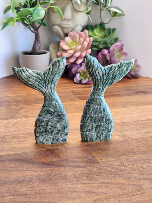 Green Mica Mermaid Tail | Around 4" | Emerald Crystal | Sparkly Sea Treasure | Stand Up Ocean Decor | Sea Witch Bathroom | Mystery Choice