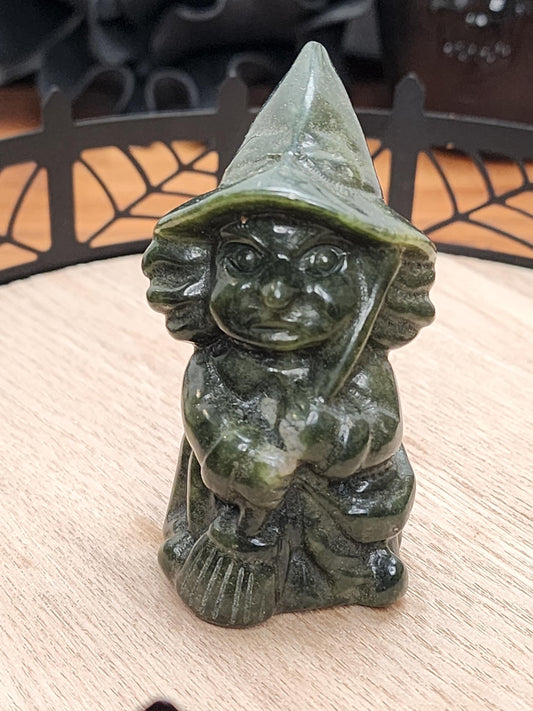 Green Jade Wise Old Witch | 3" Crystal Carving with beautiful detail all the way around. | Kitchen Witchery | Intuitively Chosen