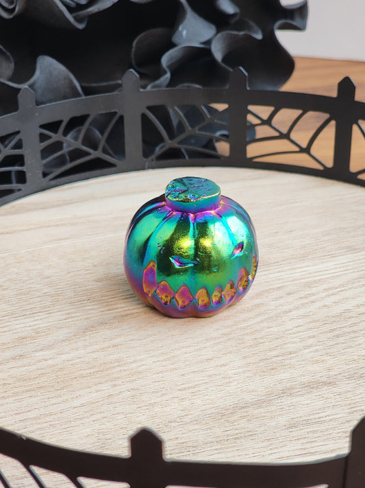 Aura Crystal Pumpkin | Rainbow Halloween Crystal | Spooky Season | Mahogany Obsidian with Aura Coating | Only One Available