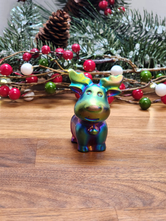 Super Fun Aura Coated Crystal Reindeer | Over 2" | Christmas Crystals | Rainbow Decor | Cute Rudolph | Pink, Purple, Green, Blue, Yellow