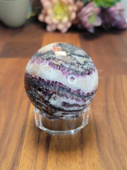 Zebra Fluorite Crystal Sphere: Pink, Purple, & White Quartz (57 MM