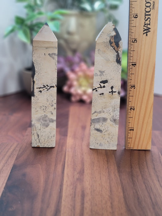 Dendritic Picture Jasper Tower: White, Gray & Black Crystal Point