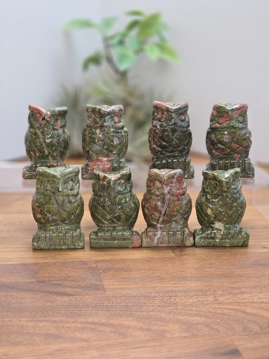 Owl Crystal Figurine: Unakite Stone Carving (1.75 Inches)