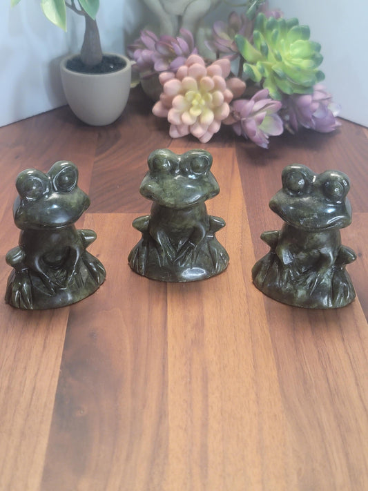 Green Crystal Frog Carving: Fancy Froggy Decor, 3 Inches