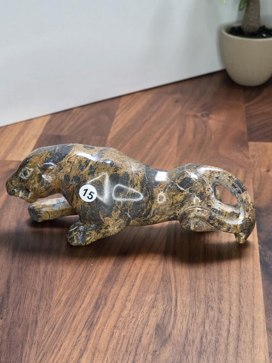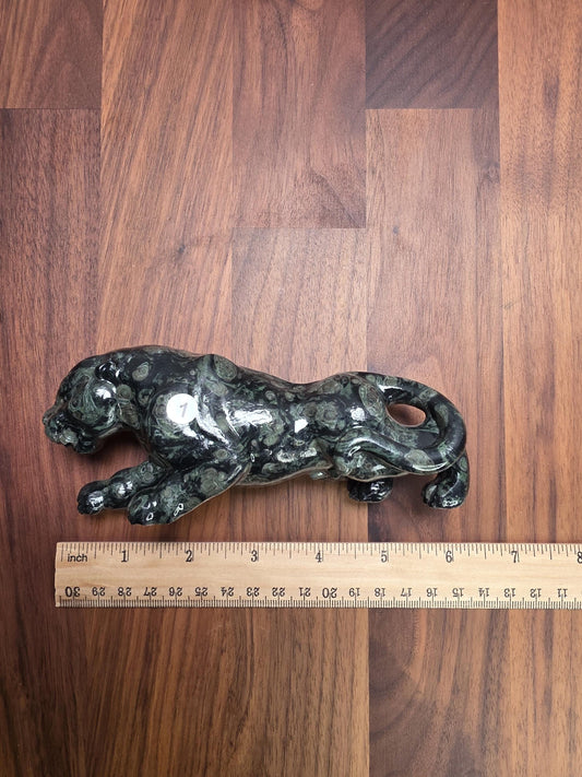 Leopard Skin Jasper Jaguar Crystal Carving | 6 Inches | Brown Gray and Black