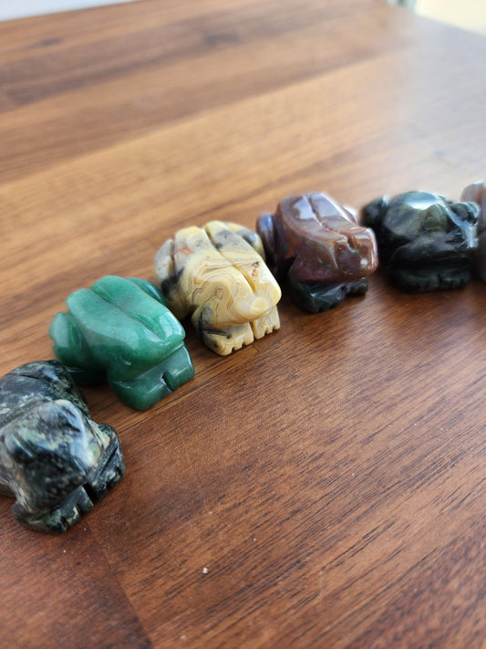 Crystal Baby Frog Sculpture - Mixed Natural Stones, Mini Size