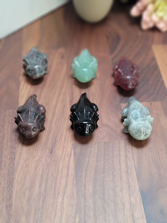 Awesome Axolotl Crystal | 2.5" | Amphibian Carving | Labradorite, Banded Calcite, Obsidian, UV Yooperlite, QueSera | Intuitively Chosen