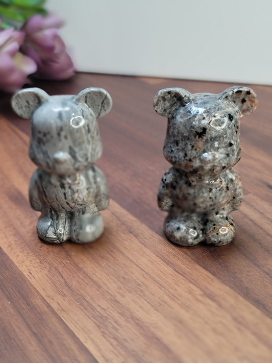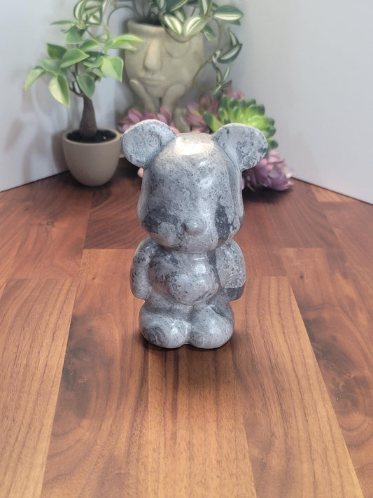 Gray Picasso Jasper Crystal Heart Bear | 6 Inches | Gray Black and White | One of a Kind