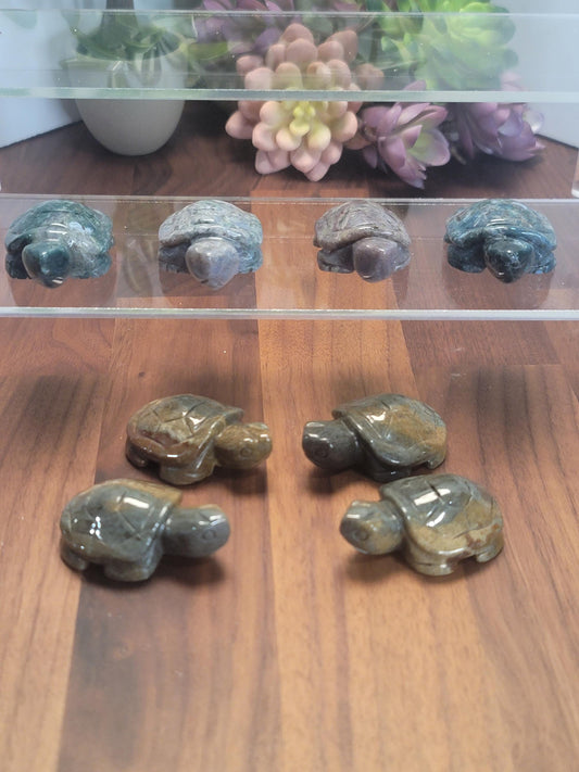 Ocean Jasper Turtle Carving: Green, Blue, Brown Crystal (2 X 1.4 Inches)
