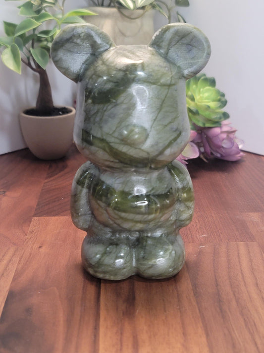 Green Jade Crystal Heart Bear: Hand-Carved Figurine, 6-Inch Sculpture