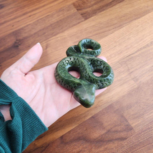 Green Jade Snake | Crystal Serpent Figurine | Halloween Crystals | Slytherin Goth Decor for Spooky Season | Lunar Year of the Snake 2025