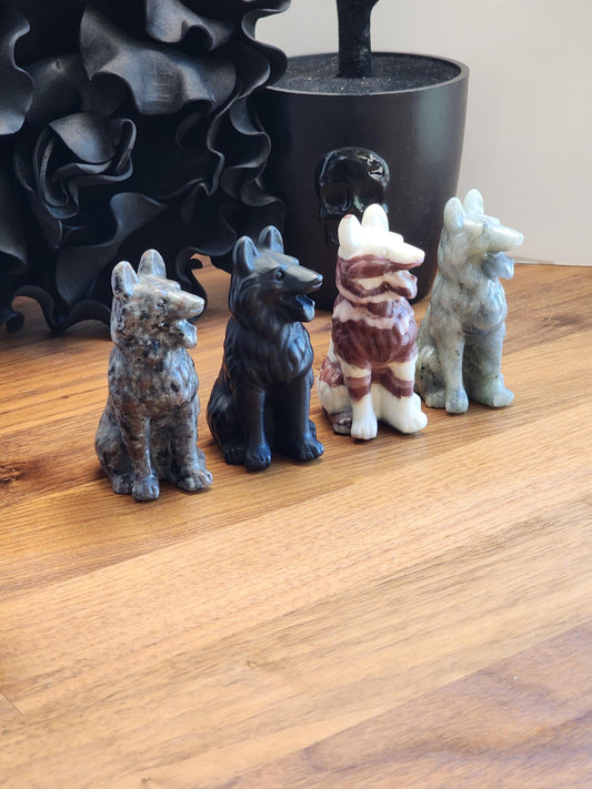 Crystal Shepard Dog Carving | 3" Detailed Pet Figurine | Brown, Black & Gray Stone | Rainbow Bridge Remembrance Gift | Wolf Protection Decor