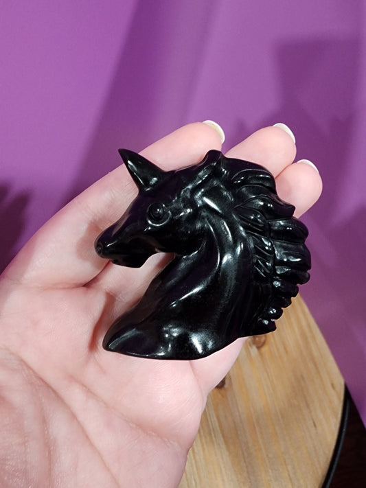 Black Obsidian Unicorn Carving: Crystal Stallion Horse Figurine