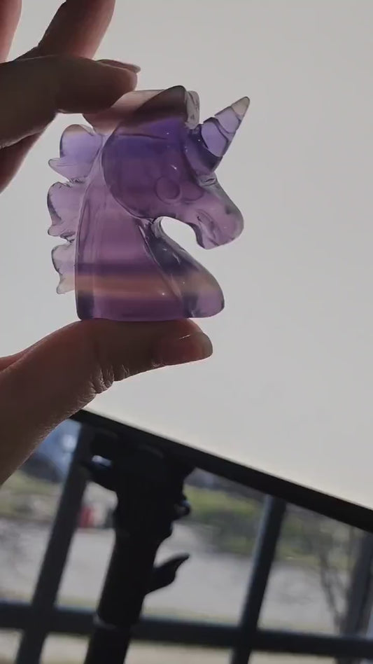 Light Fluorite Unicorn Crystal | Rainbow Fluorite Carving | Transparent Banded Horse with Point | Intuitively Chosen