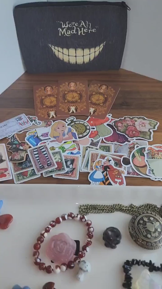 Wonderland Bundle #2 | Crystal Mushrooms, Bracelets, Butterfly, Bow, Hearts, Cheshire Cat, Rose | Charms, Stickers, Tarot & Pocket Watch