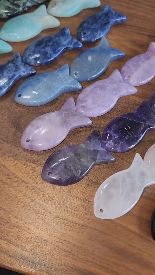 Crystal Fish Carving: Amethyst, Labradorite, Obsidian, Quartz (1.54")