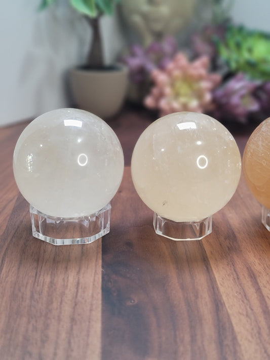 Optical Honey Calcite Sphere: Sparkling Crystal Meditation Stone (60mm)