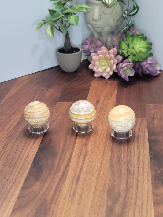 Yellow Banded Calcite Crystal Sphere | 43 MM | Yellow White and Orange | Intuitively Chosen
