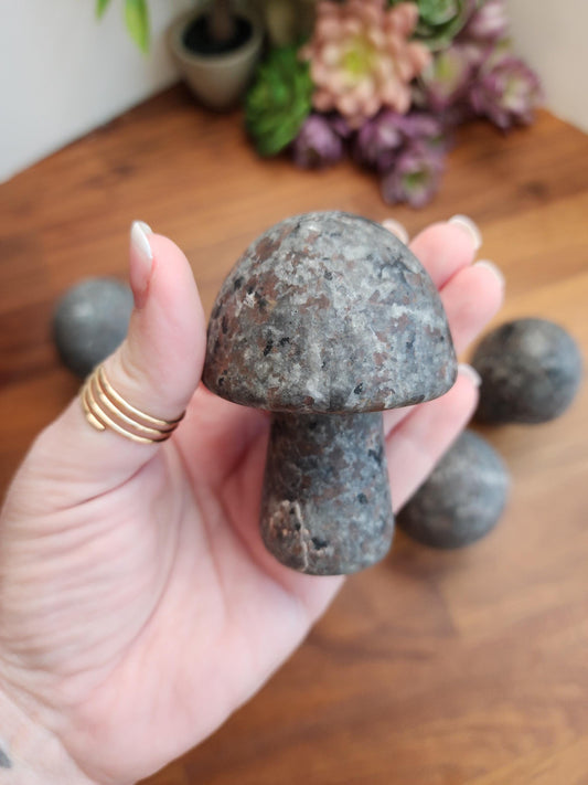 Yooperlite Mushroom Crystal Carving: UV Reactive Stone Decor