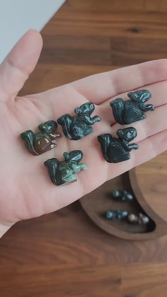 Mini Moss Agate Squirrels | Cute Crystal Critter | Forest Green Moss Agate with hints of Brown | Extra Mini Crystal Zoo | Intuitively Chosen