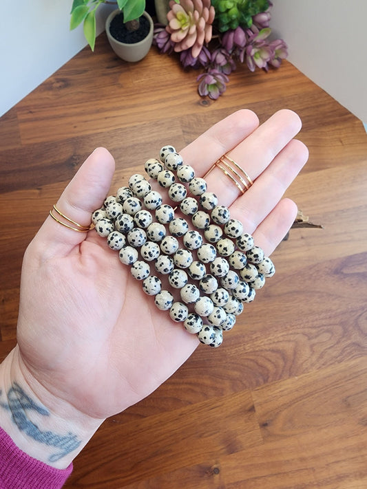 Dalmatian Jasper | 8MM Crystal Bracelet | Classy Black and White Dalmation Spotted Jewelry | As Seen in the Pot of Gold Crystal Confetti Mix