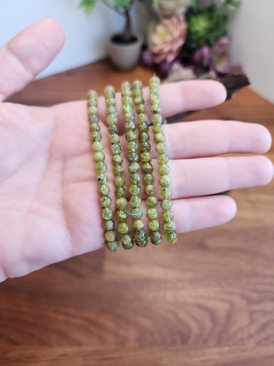 Peridot Crystal Bracelet | 5MM | Minimalist Green Jewelry | Rare Crystals | Bright Grass and Moss Colors | Vibrant Summer Fashion Ideas