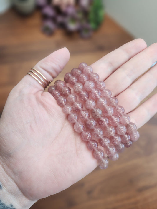 Strawberry Quartz Bracelet: 8MM Crystal Bead, Valentines Gift