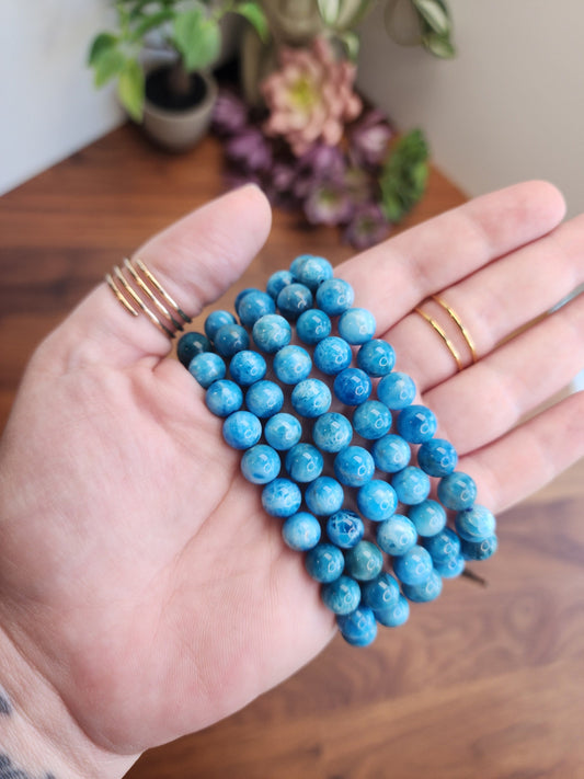 Blue Apatite Bracelet | 8MM Crystal Beads | Bright Teal & Sky Blue Jewelry | Ocean Lover, Surfer Gift | Mother's Day or Girlfriend Favorite!
