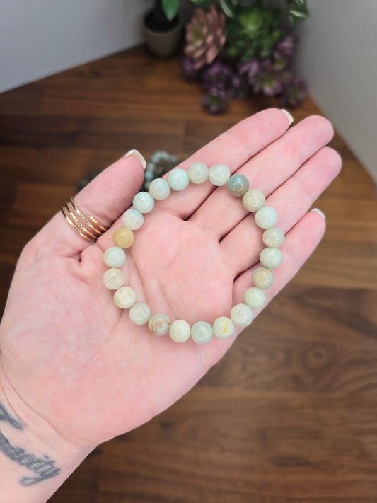 Caribbean Calcite Bracelet | 8MM Crystal Favorites | Calm Ocean Blue, hints of White Surf and Tan Sand | Sea Witch Jewelry & Coastal Love