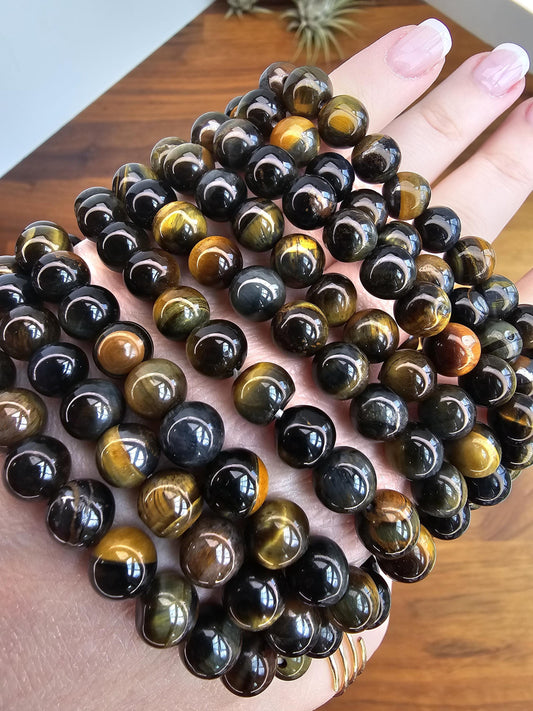 Blue & Yellow Tiger Eye | 8MM Crystal Bracelet | Mixed Tigerseye Beads | Gifts for Men or Teens | Intuitively Chosen
