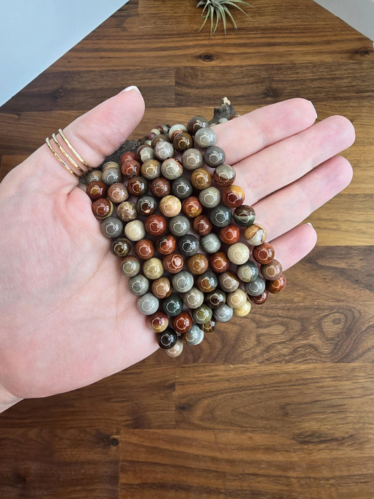 Polychrome Bracelet | 8MM Crystal Jewelry | American Picture Jasper in Red, Off White & Blue | Patriotic Gifts | Veteran | 4th of July