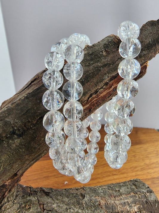 Clear Crackle Quartz Bracelet: Around 8MM Crystal Bead Bracelet with Rainbows & Sparkle