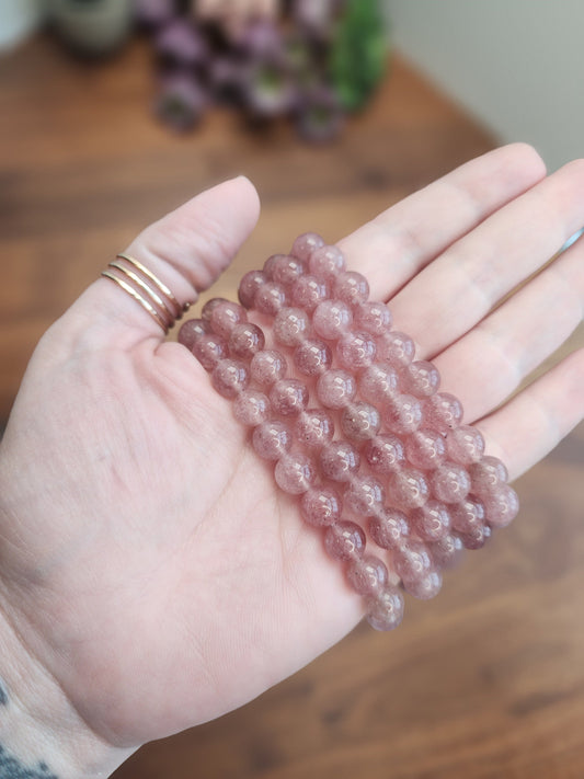 Lavendar Strawberry Quartz Bracelet: 8MM Purple-ish Pink-ish Red-ish Crystal Beads | Fun Easter Basket gift for kids | Valentine or Mom Day