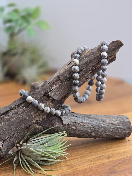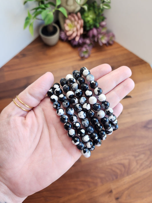 SpiderWeb Jasper Bracelet: 8MM Webbed Black and White Patterns for Halloween or Spooky Styles | Gothic Vibes Wednesday would Love!