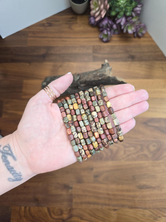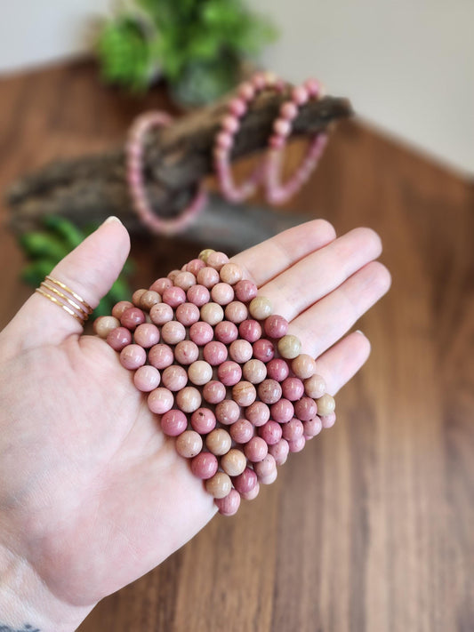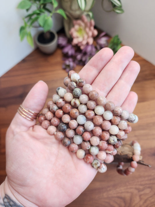 Spicy Jasper Bracelet: 8MM Natural Plum Blossom Crystal Beads | Red, Prink, Gray, White, Black | Grounding Earth Energy, Connect with Nature