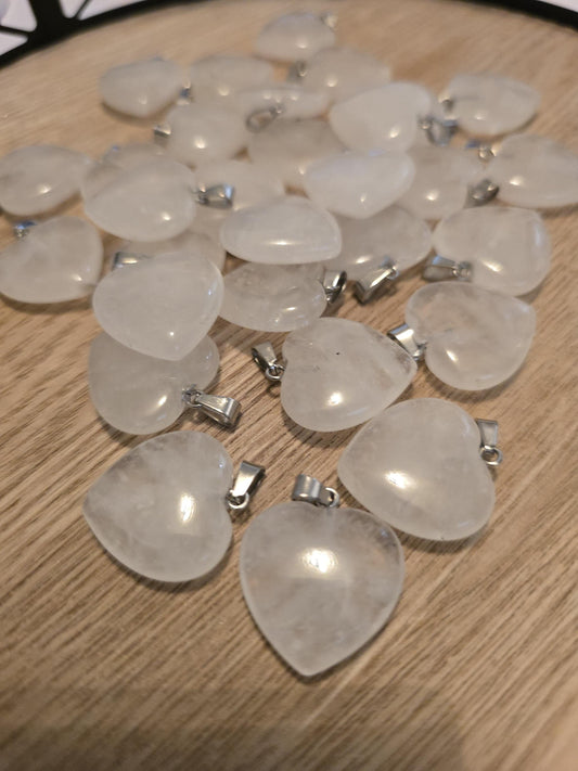 Heart Pendant Clear Quartz Crystal, Polished Gemstone Charm (20mm, Natural Stone, Spiritual Jewelry Gift)