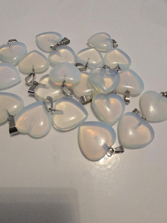 Opalite Heart Pendant - Iridescent Crystal Necklace Charm