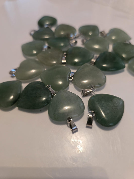 Green Aventurine Heart Pendant: Lucky Charm Crystal, 20mm Stone