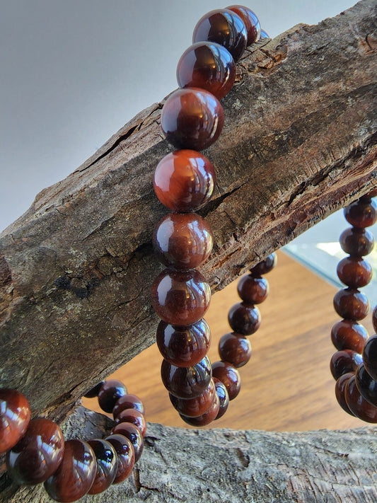 Red Tiger's Eye Bracelet: 8MM Crystal, Subtle Flash