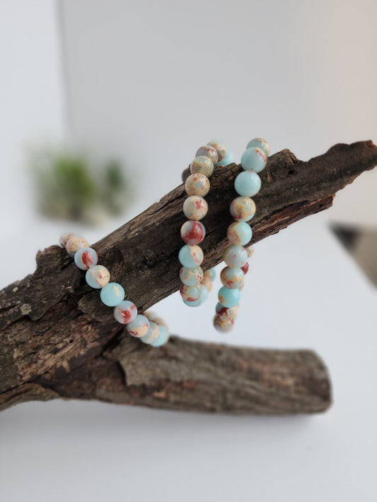 Sky Blue Imperial Jasper Bracelet: 8MM Agalmatolite Crystal Beads
