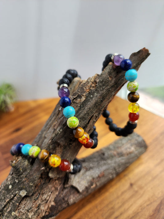 Lava Rock Chakra Bracelet: Assorted Color Beads, Meditation Jewelry