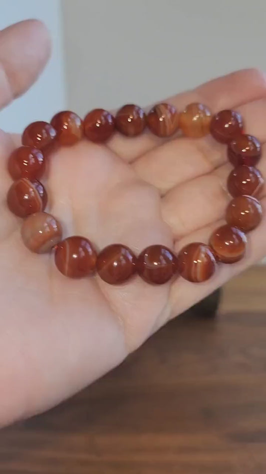 Banded Carnelian Bracelet: 10MM Red Agate Crystal Bead Stretch Bracelet
