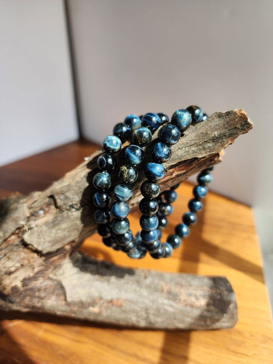 Blue Tiger's Eye | 8MM Crystal Bracelet | Natural Flashy Tiger Eye Beads with Blue Flash | Masculine & Subtle Jewelry for Couples