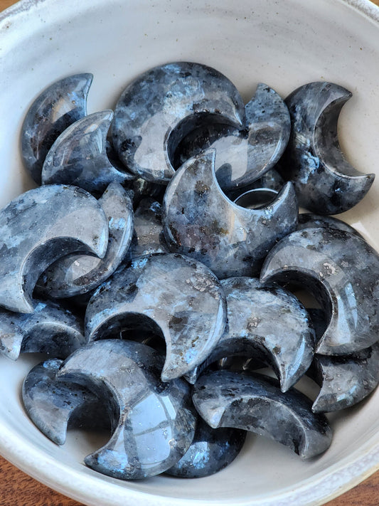 Larvikite Moon: Flashy Crystal Crescent, Intuitively Chosen