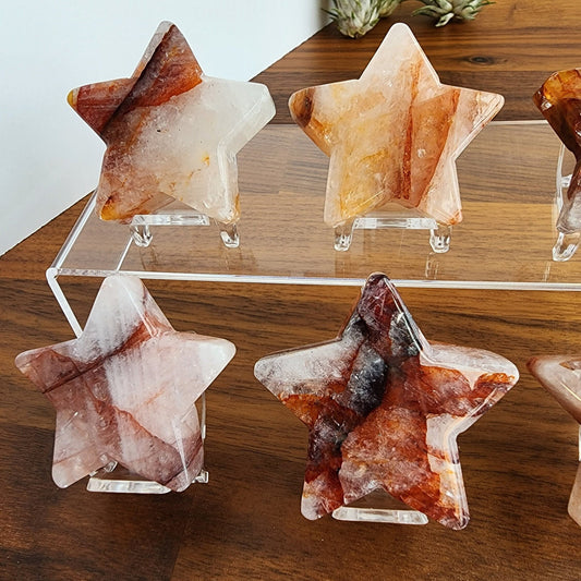 Fire Quartz Crystal Star: Red Hematoid Inclusions, Rainbow Sheen